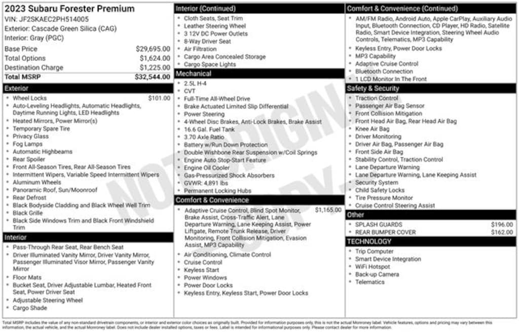 - Radio: Subaru Starlink 6.5" Multimedia Plus System