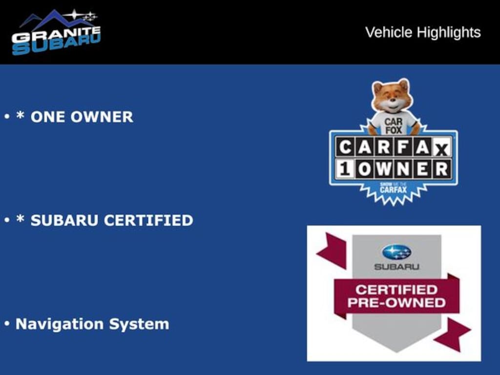 * ONE OWNER, * SUBARU CERTIFIED, Navigation System.