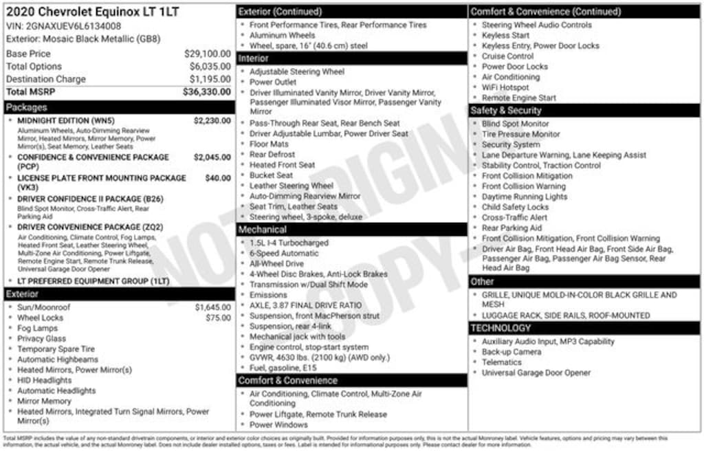 VIN# 2GNAXUEV6L6134008Stock# FL630B
