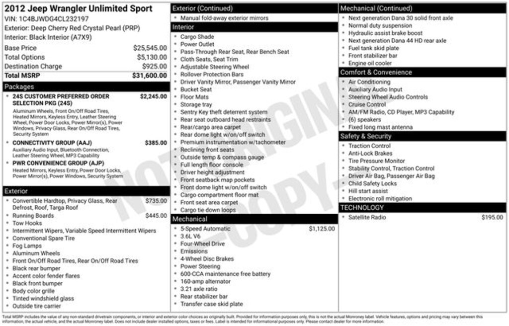 VIN# 1C4BJWDG4CL232197Stock# 9623B