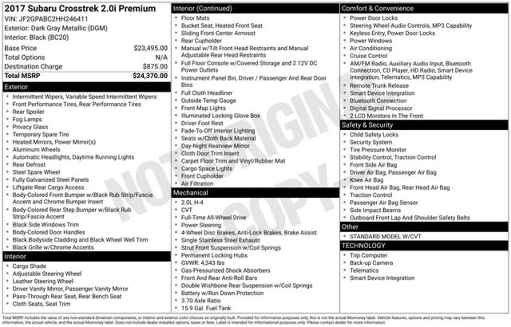 Used 2017 SubaruCrosstrek 2.0i Premium