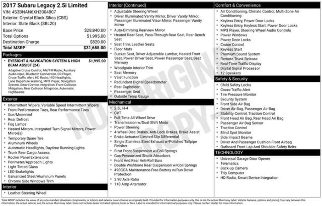 - Eyesight & Navigation System & High Beam Assist
