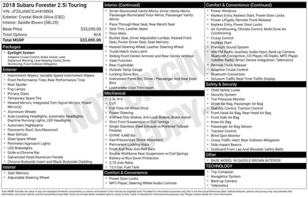 VIN# JF2SJAWC5JH410004Stock# 9476A