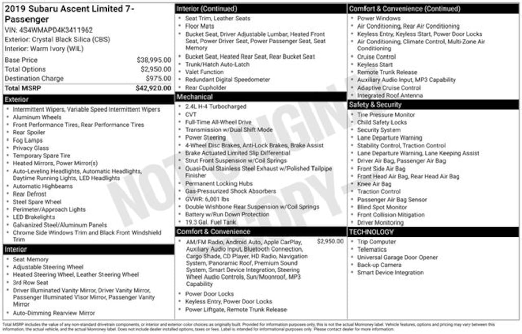 - Radio: Subaru STARLINK 8.0" Multimedia Plus System