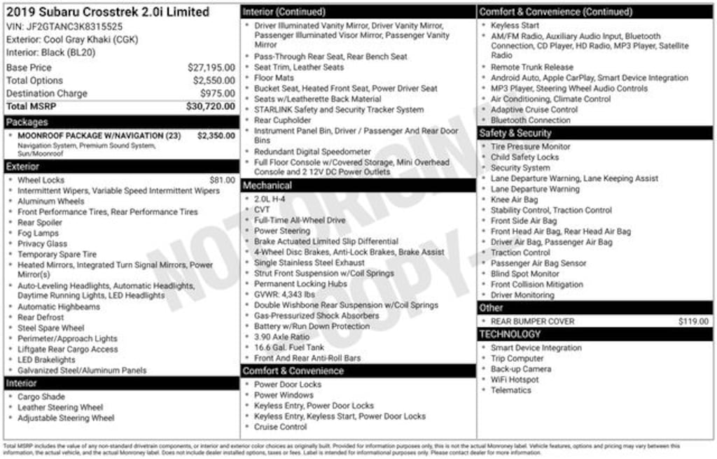 Used 2019 SubaruCrosstrek 2.0i Limited