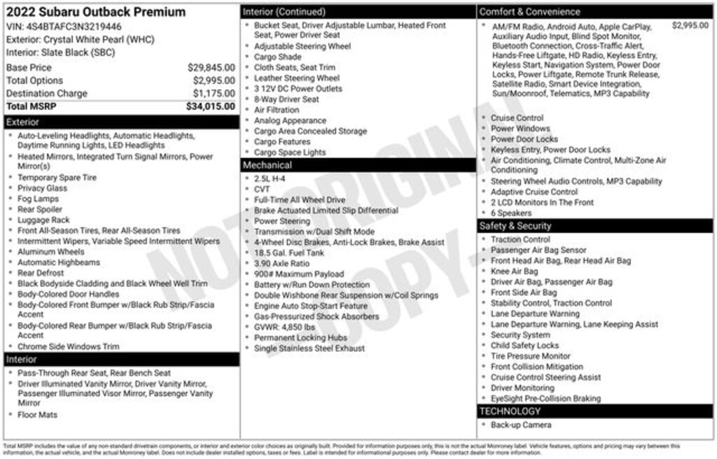 * ONE OWNER CLEAN CARFAX, * ONE OWNER, * CLEAN CARFAX, * AWD, * KEYLESS ACCESS & START, * HEATED SEATS, * EYESIGHT, * PREMIUM AUDIO, * USB PORTS - MP3 / IPOD READY, * BACKUP CAMERA, * ALLOY WHEELS, Blind Spot Detection (BSD), BSD & RCTA & Keyless Access & Push Button Start, Hands-Free Power Rear Gate, Heated door mirrors, Keyless Access w/Push Button Start, Power Moonroof, Radio: Subaru STARLINK 11.6" Multimedia Nav System, Rear Cross Traffic Alert (RCTA).