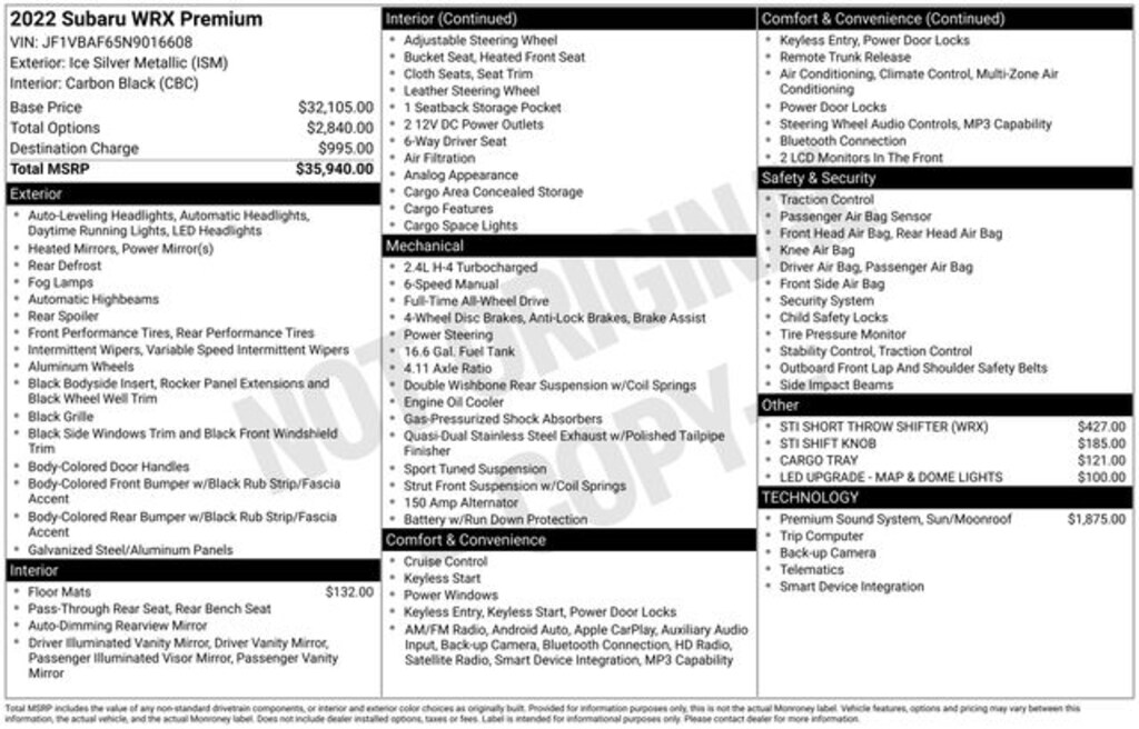 VIN# JF1VBAF65N9016608Stock# 9440A