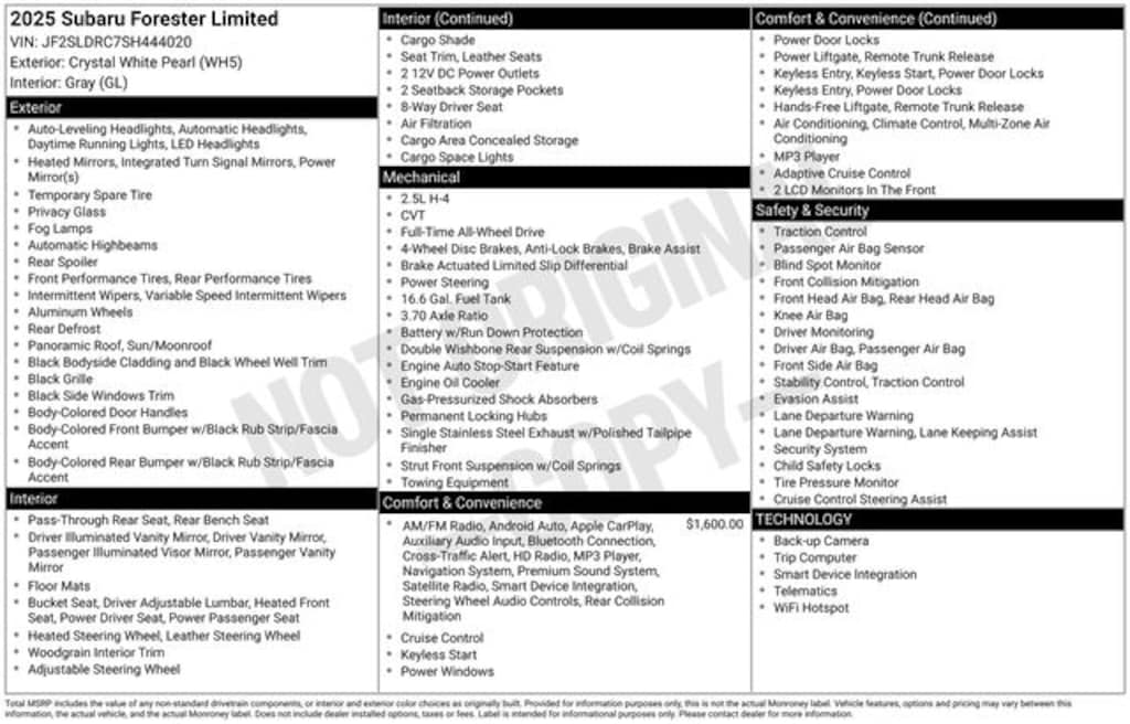 - Radio: Subaru 11.6" Multimedia Navigation System