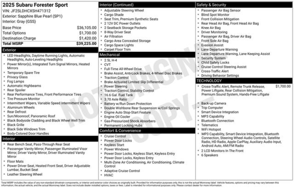 - Emergency communication system: MySubaru Safety (3-year free trial)