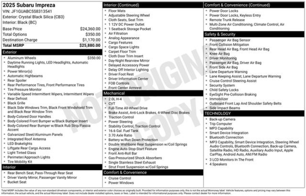 * ONE OWNER CLEAN CARFAX, * ONE OWNER, * CLEAN CARFAX, * SUBARU CERTIFIED, * AWD, * KEYLESS ACCESS & START, * HEATED SEATS, * EYESIGHT, * PRE-COLLISION BRAKING, * ALLOY WHEELS.