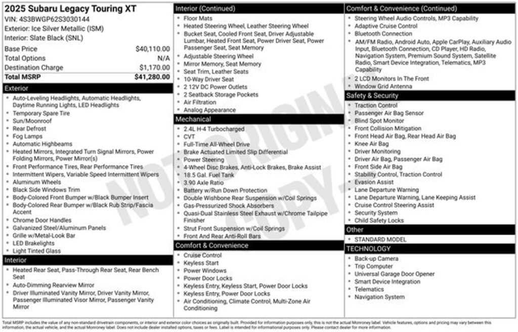 - Radio: Subaru 11.6" Multimedia System w/Navigation